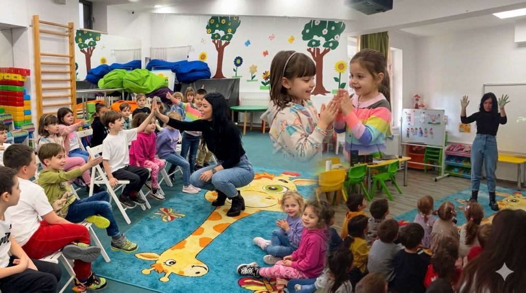 Nu prezentari. Nu postere cu reguli. Jocuri practice, interactive, cu logica in spate — de ce degetul mare, de ce 30 de secunde, de ce fiecare pas are un rol.